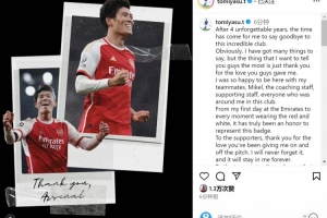 体育资讯7月4日讯 富安健洋更新社媒动态,与阿森纳告别。